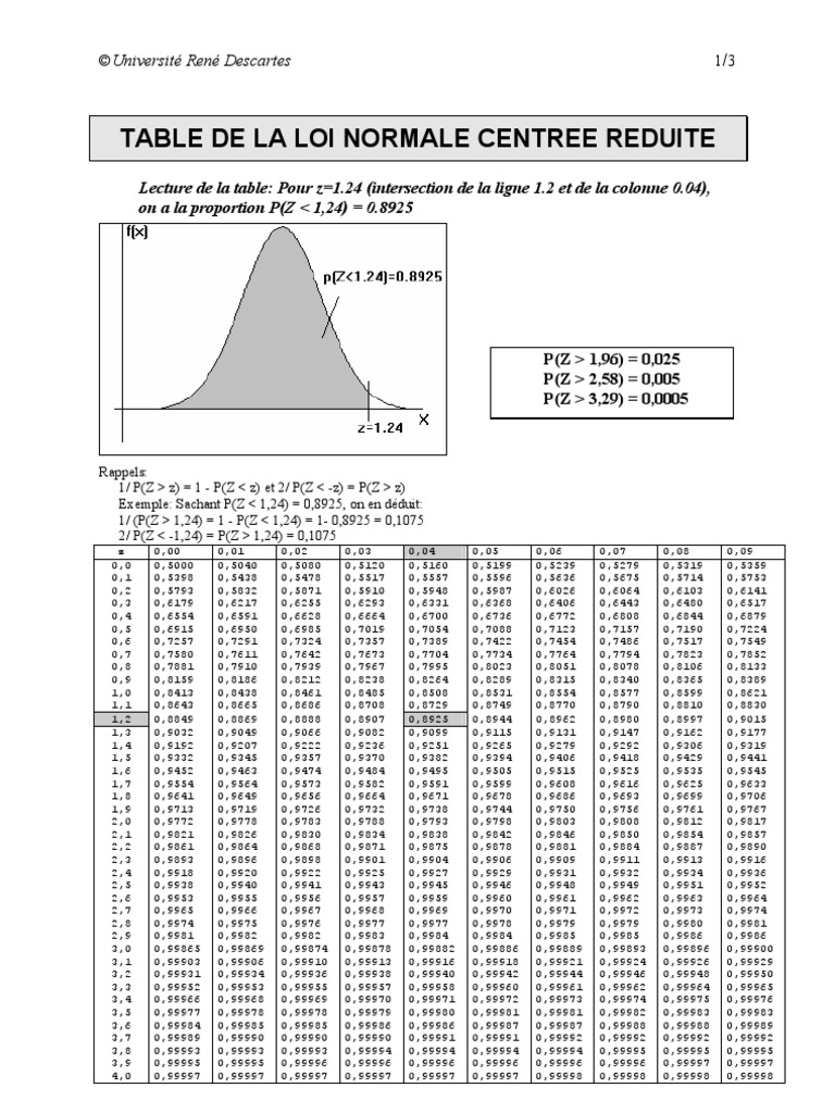 table loi de student